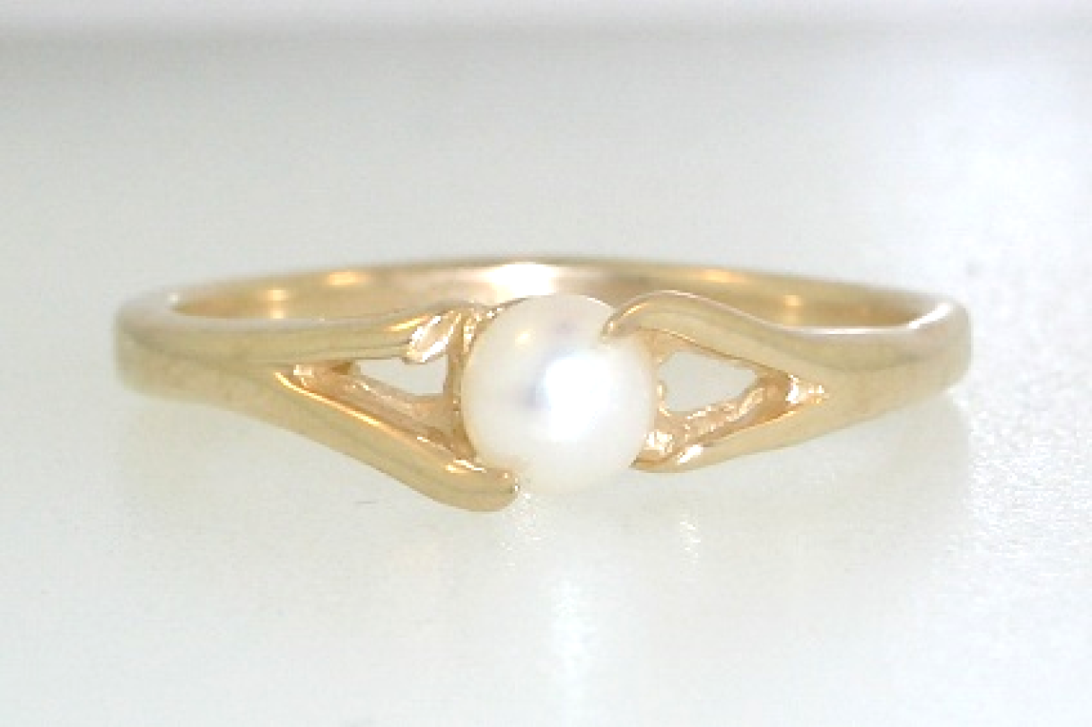 Ladies 10k yellow gold ring set with (1) one 4mm fresh water pearl.