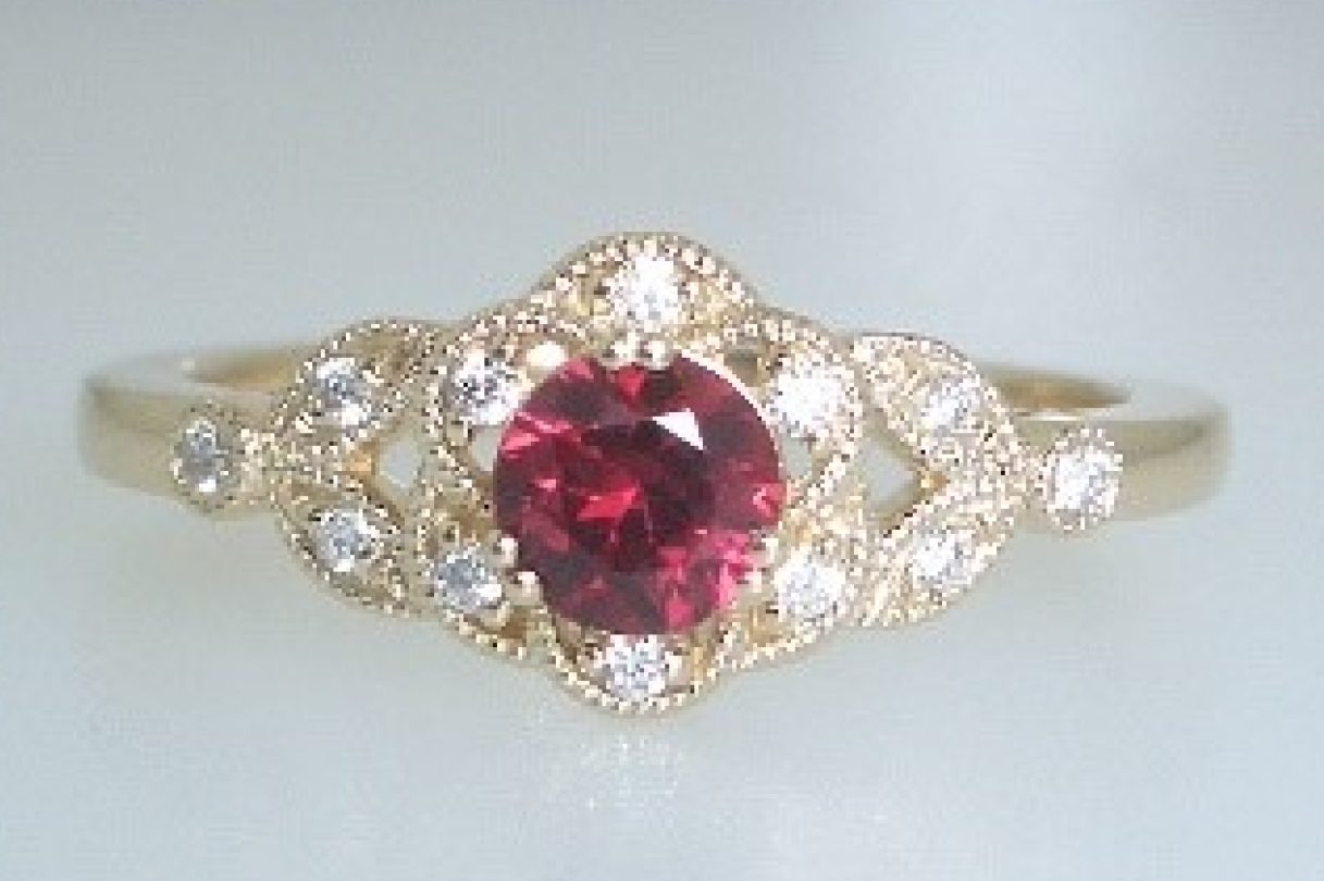 Gold Filigree Ruby and Diamond Ring