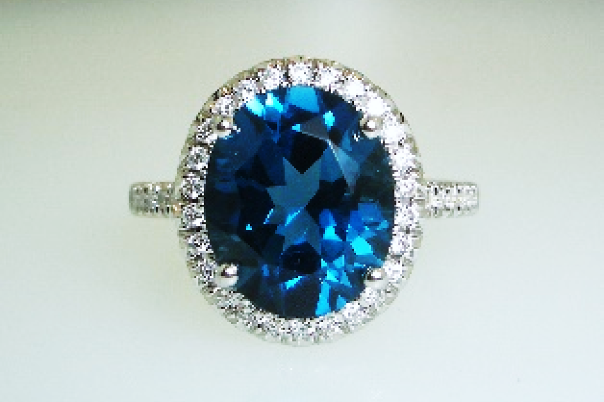 London Blue Topaz and Diamond Halo Ring
