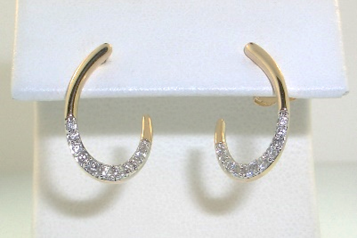 14k yellow gold and diamond hook style earrings. Set with (20) twenty round brilliant cut I/I1 diamonds weighing a total of .20ct..